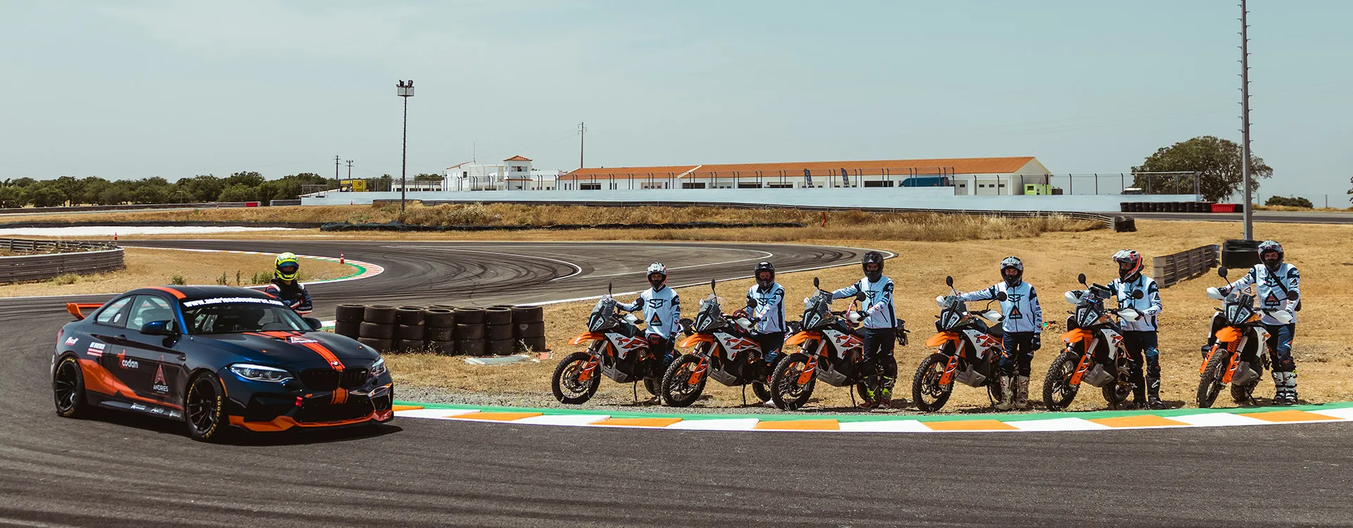 You choose: more asphalt or more gravel. Want to race laps on a circuit in a BMW M2? Let’s go. We ride KTM Adventure 890Rs for the road, and for more technical terrain, there’s the nimble KTM 390 Adventure R. The bikes are prepped. The routes are tested. The team is ready.